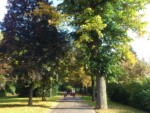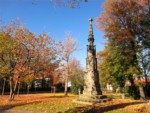 Auf dem Schild vor der Friedenseiche ist zu lesen : "FRIEDENS-EICHE / gepflanzt zur Erinnerung an den Friedensschluss in Frankfurt a.M. am 10. Mai 1871"
