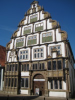 Das Gebäude aus dem Jahr 1585 beherbergt heute die Volkhochschule der alten Hansestadt Lemgo.